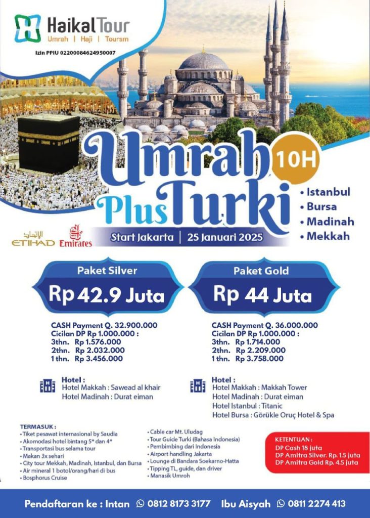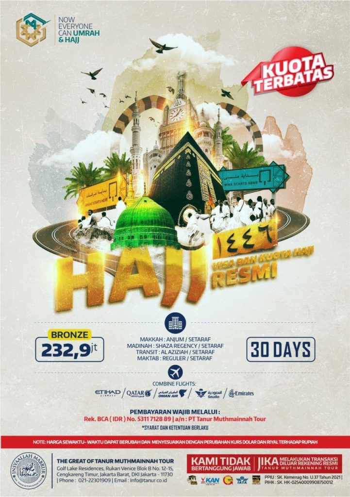 Mitra terbaik untuk umroh dan haji memiliki reputasi baik dengan layanan pelanggan responsif serta pengalaman bertahun-tahun. Kami menawarkan paket lengkap yang mencakup akomodasi, transportasi, dan bimbingan ibadah, serta memastikan fasilitas nyaman dan kepatuhan terhadap regulasi yang berlaku.